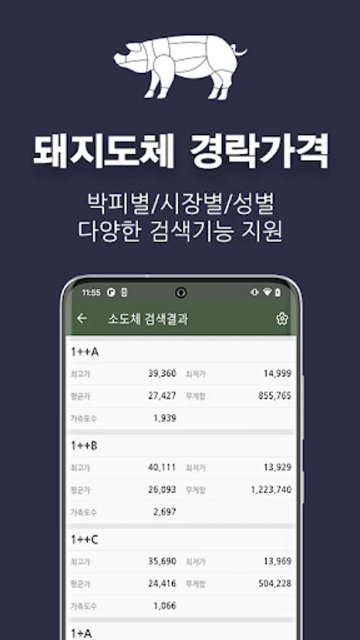 You can check the price information of cattle/pig/part meat meridians in the nationwide wholesale market, as well as