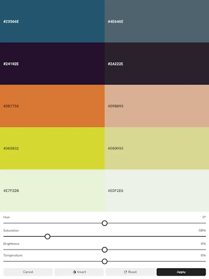 ★ History - Undo or redo any changes made to the color palette by swiping left or right.