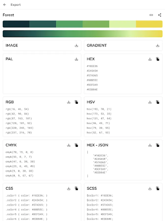 Pigments helps you create/generate, edit and export beautiful color palettes right from your phone.