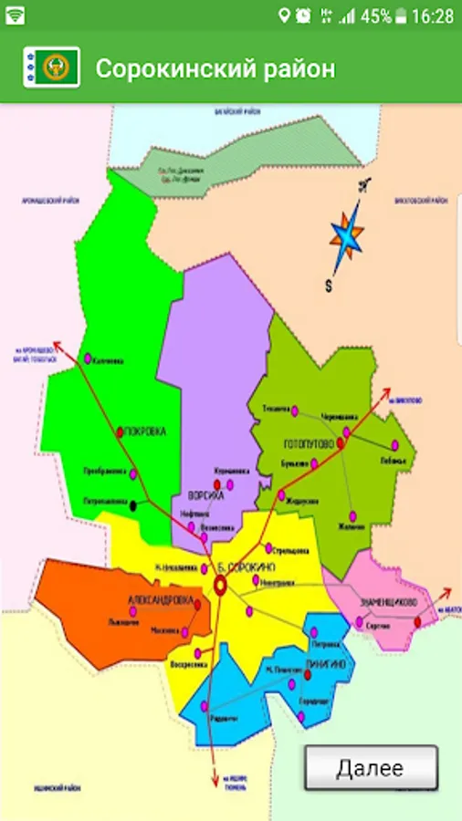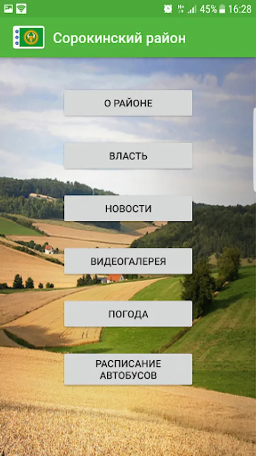 The app allows the user to become familiar with Sorokinsky District of the Tyumen region, to obtain information about the boundaries of the district and rural settlements, included in its composition, the structure of local authorities, to monitor public events, news feed, access the weather and the schedule of buses.