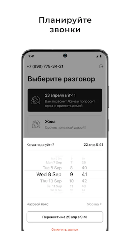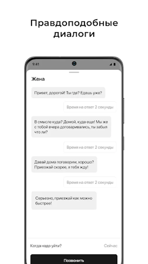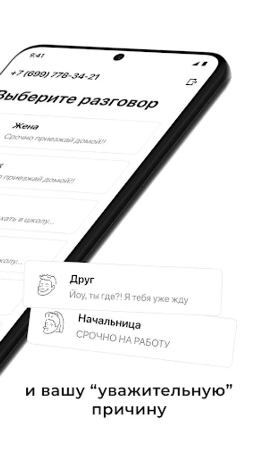 It allows you to quickly leave an unnecessary meeting. You set the timer, and at the appointed time, the answering machine calls you. He pretends to be a spouse, boss, or family member who urgently calls you. All that remains is to apologize, get up and leave.