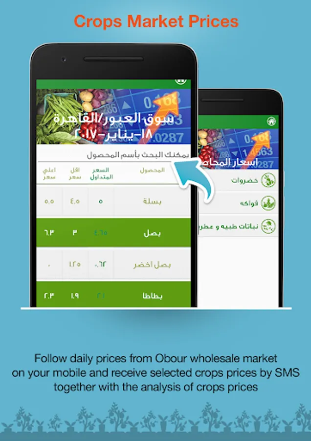 * Obour National wholesale market prices sent daily on all fruits, vegetables and medicinal and aromatic plants as a benchmark for your trade deals