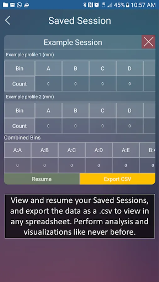 · App provides minimum, maximum and average measurement values for a given sorting session.