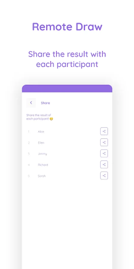 - Click the share button to send the code to the participant to find out who the secret santa is.