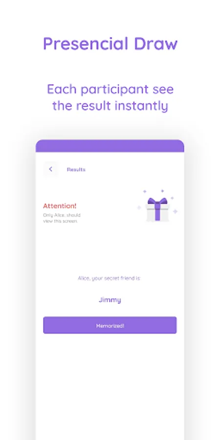 - Memorize your secret santa, and swipe your smartphone or tablet so that the next nominee can view his or her random secret santa!