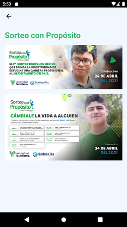 The Giveaway with a Purpose is the first digital giveaway in Mexico and is a joint initiative between Universidad Tecmilenio and Sorteos Tec; that seeks to generate resources to support the Scholarships with Purpose program. Be an ally!