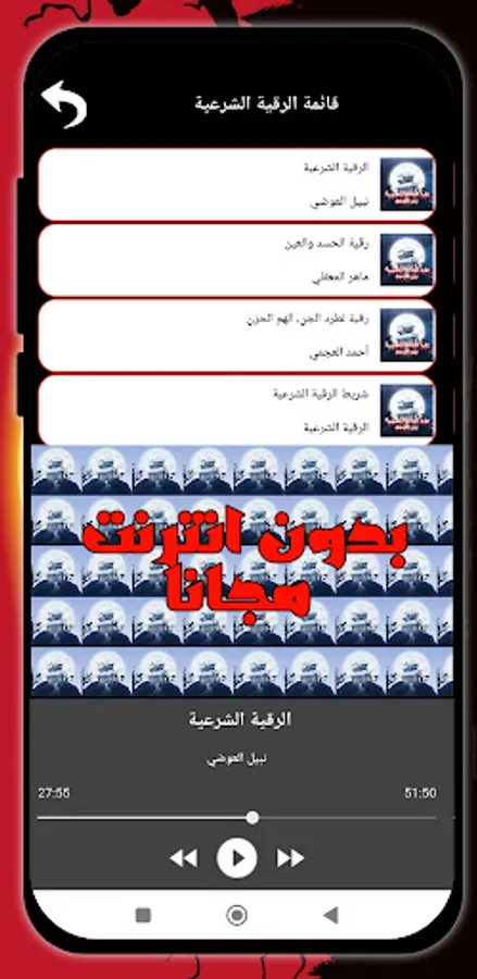 This ruqyah is considered one of the most powerful and comprehensive incantations for the treatment of magic, touch and touch by the lover, the eye, envy, and the expulsion of negative energy from the soul and body in a distinguished application that includes a set of important functions and listening to the application without the Internet. It also provides the feature of browsing other sites while continuing to listen to the ruqyah in the background of the application In addition to its elegant and easy-to-use interface, it also has the characteristics of sharing the application with others.