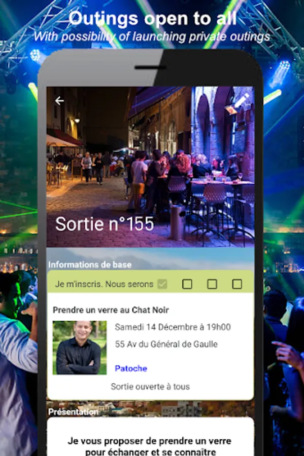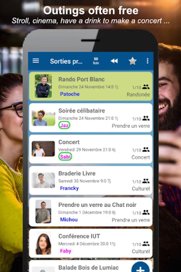 Outings are often free or very cheap and always totally disinterested. It can be a simple walk, a concert, a cinema, a billiard, a bowling, a restaurant or simply having a drink.
