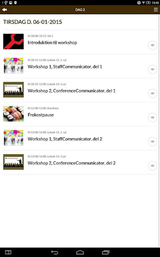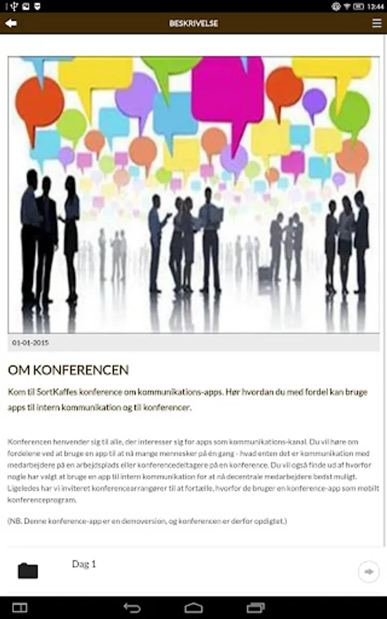 ConferenceCommunicator is a conference app, which is used as a mobile conference program. The contents can be program, list of participants, practical information, analysis, presentations, and more. Participants can collect relevant program points to their own program. It is possible to ask - and vote function as well as chat function between the participants. You can use push notifications to make participants aware of the content and participants can save the program items in your phone calendar.