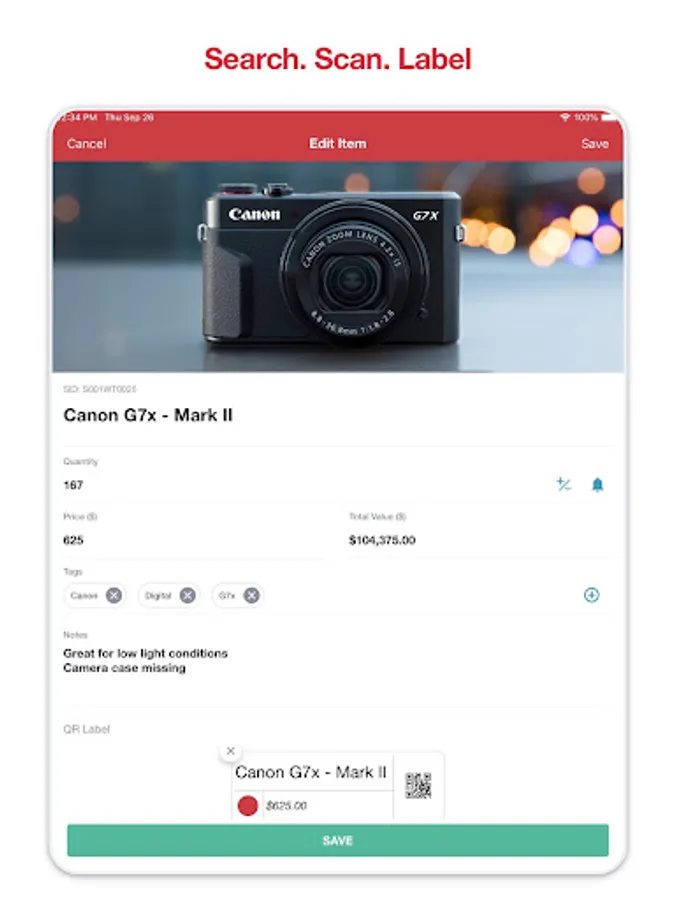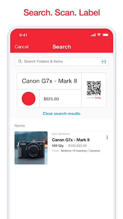 -Search, move or update your items instantly using our in-app scanner.