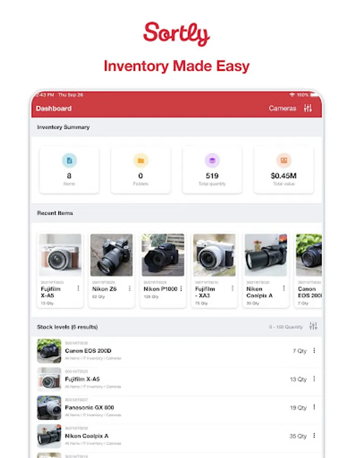 Sortly is a super simple inventory management solution that enables businesses and teams to easily track what they have, where it is, and who has it. Anytime, anywhere, on any device.