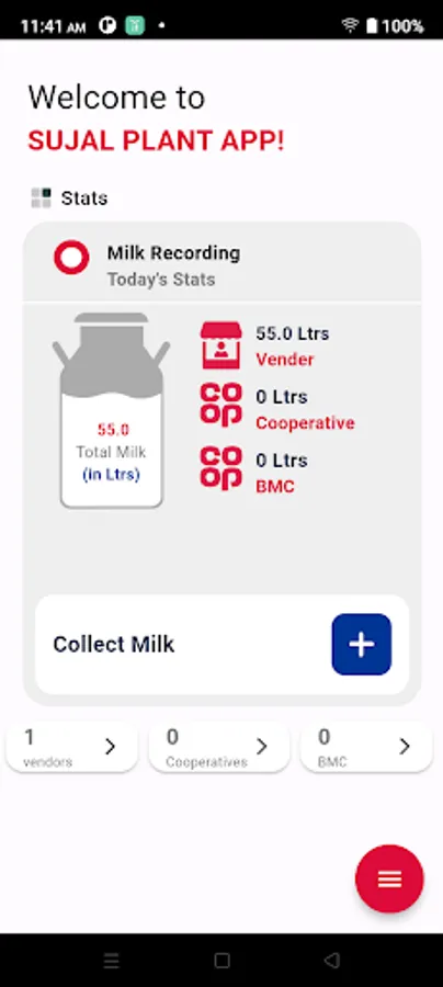 Sujal Plant App is used for collection milk form vendors, coopratives and BMC.