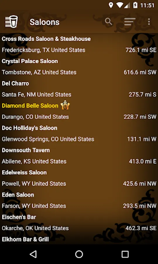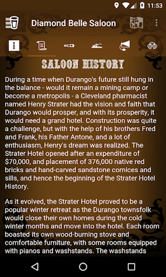 I hope that the Saloons in this app make you want to walk up to the bar after a long day on the dusty trail and say "Whiskey."