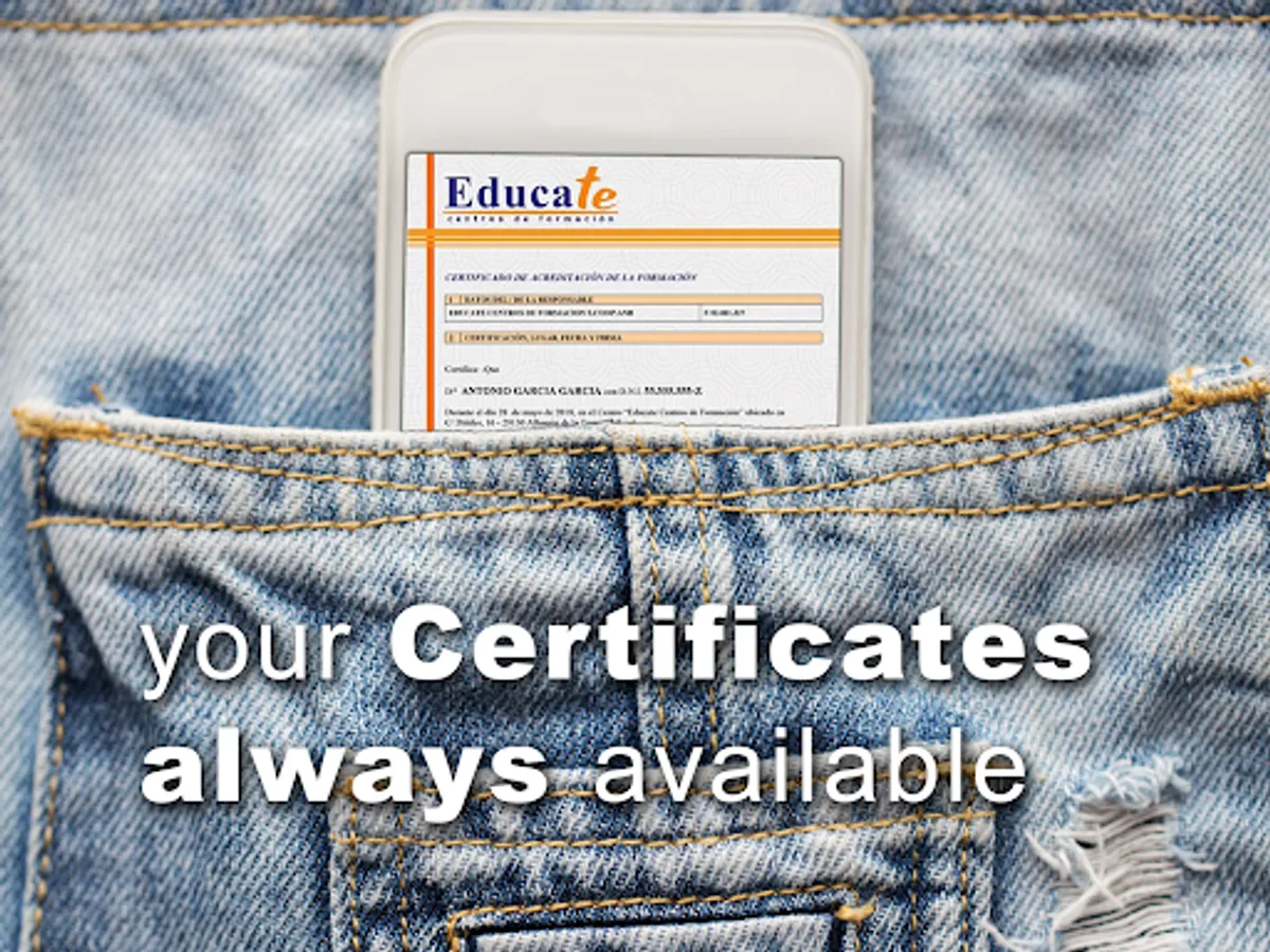 and finally you will have the certificate available, you can download it in digital format and share it with any person or entity that requires it.