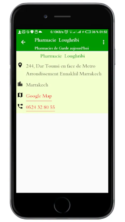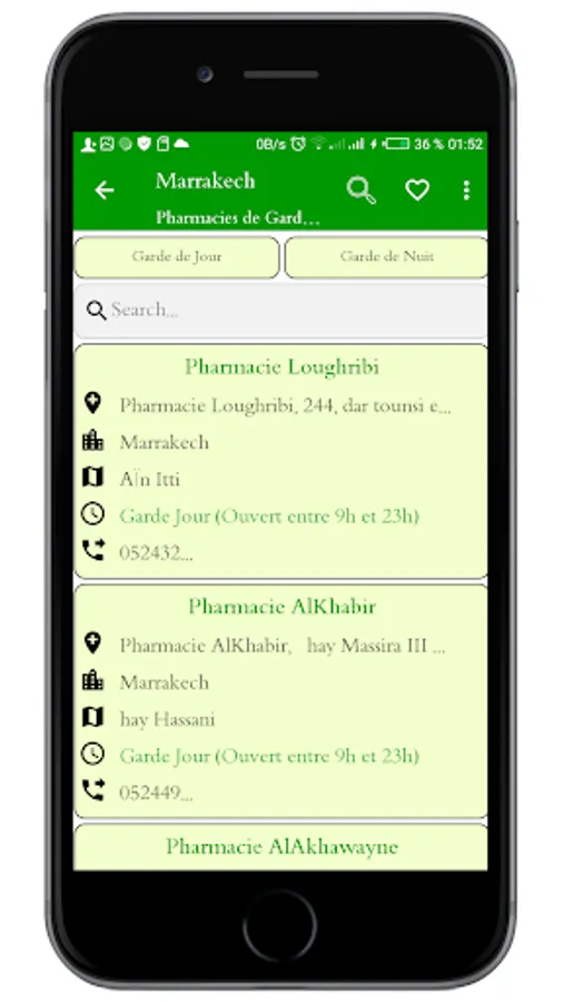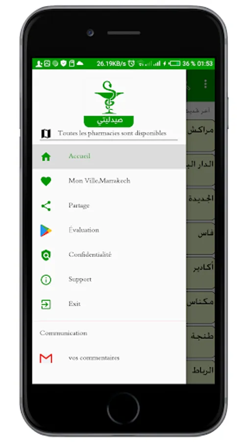 ✓ A directory/database of all pharmacies in the cities of Morocco.