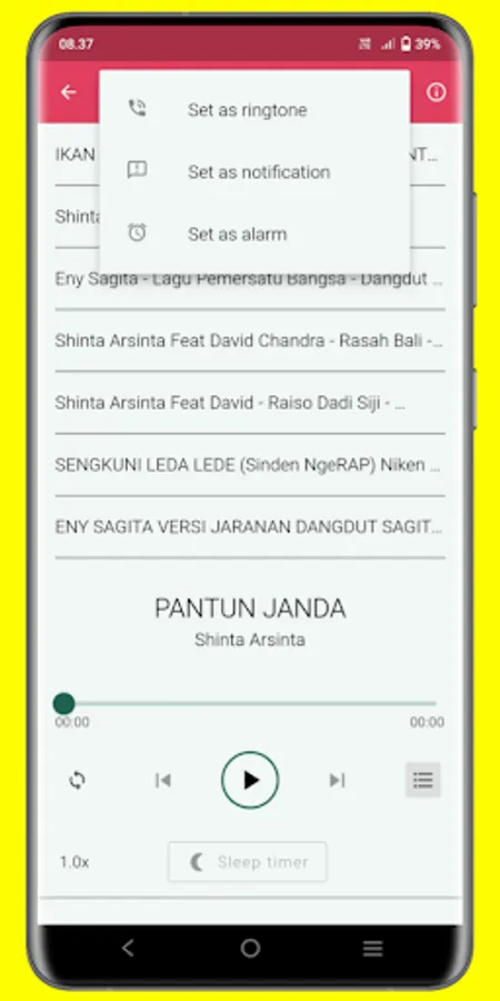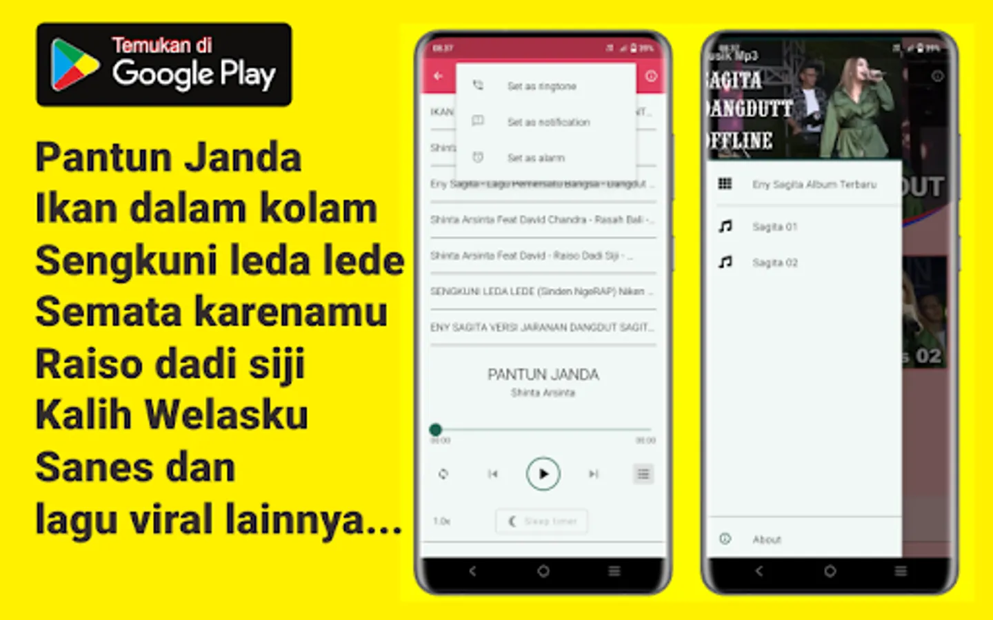 The Sagita widow Dangdut rhyme application is the most complete mp3 song player application for Eny Sagita's viral dangdut song full album, which we dedicate to lovers of the latest offline Sagita Jandut viral dangdut song. Eny Sagita's Viral dangdut song is still very popular in all circles, especially Eny Sagita's latest viral mp3 dangdut 2023 connoisseurs, who are eager to have the most complete offline dangdut Sagita song collection application. We present this exclusive application for lovers of offline viral dangdut mp3 songs who have difficulty finding the most complete collection of offline viral dangdut songs. Don't worry!! This application is offline, so once downloaded it can be played again without an internet connection, and it's free forever.