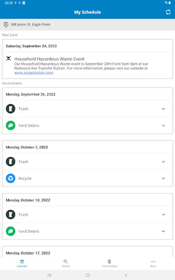 Get service reminders and alerts, pay your bill, report a problem or let the Waste Wizard tell you which cart to put that material in, all from this convenient app. Get started by downloading it today! For customers of Southern Oregon Sanitation.