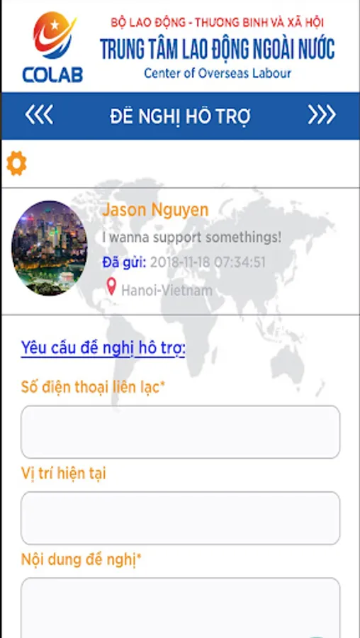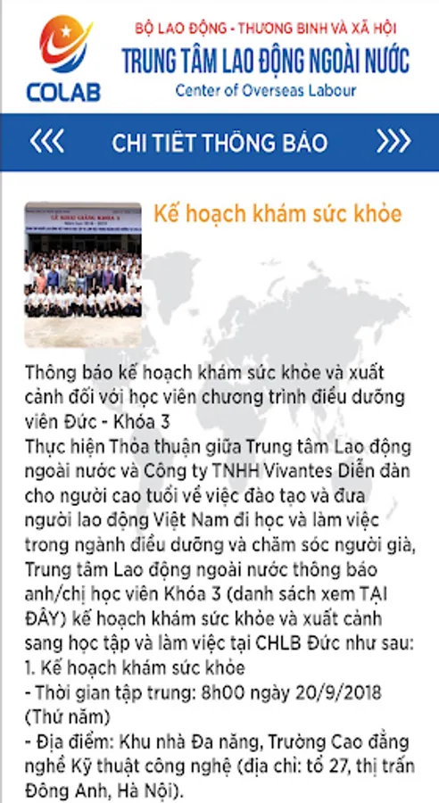 The application to connect with Vietnamese workers working abroad (COLAB SOS) is an essential tool for workers, trainees and nurses working abroad under the center programs. Take action in case of danger or arising numbers can be contacted, requesting emergency assistance from the authorities.