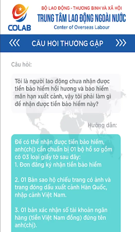 The application helps to answer basic questions for employees about administrative procedures in the host country and Vietnam.