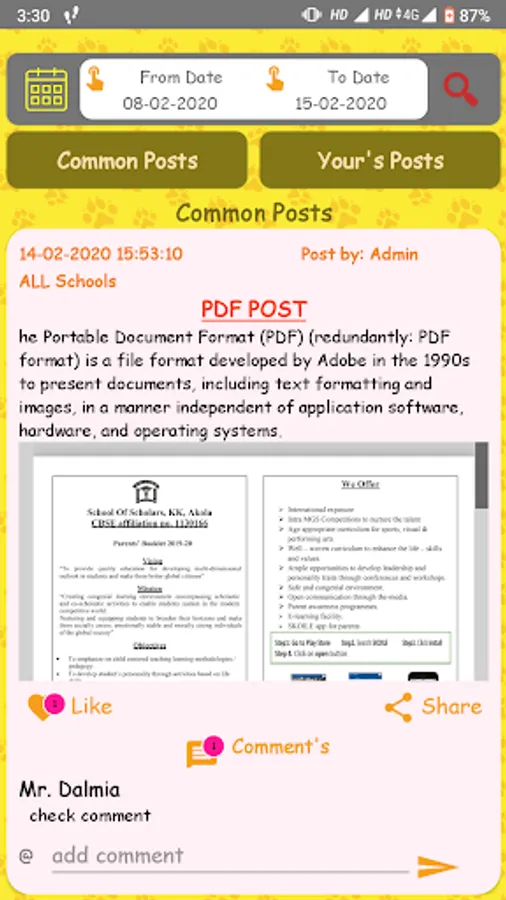 3) Parents can share and view posts, comment on posts and discuss their concerns on a common platform easily.