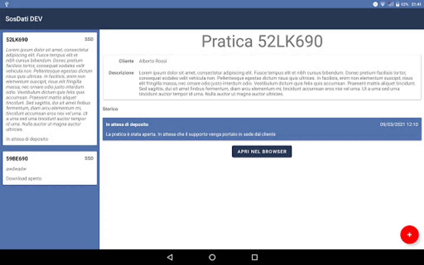 SosDati for Resellers allows you to access the list of open cases at the SosDati data recovery center.