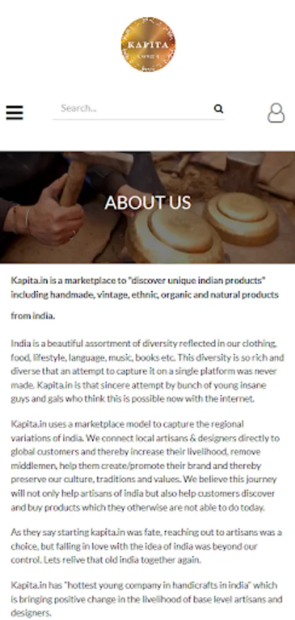 Kapita.in uses a marketplace model to capture the regional variations of india. We connect local artisans & designers directly to global customers and thereby increase their livelihood, remove middlemen, help them create/promote their brand and thereby preserve our culture, traditions and values. We believe this journey will not only help artisans of india but also help customers discover and buy products which they otherwise are not able to do today.