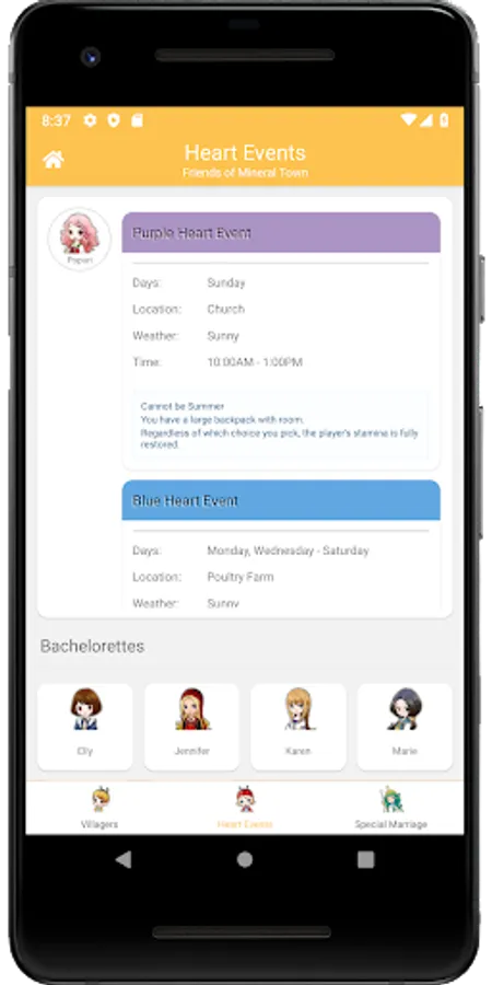 Recipe Ingredients, Utensils, Fishing, Villagers, and Heart Events