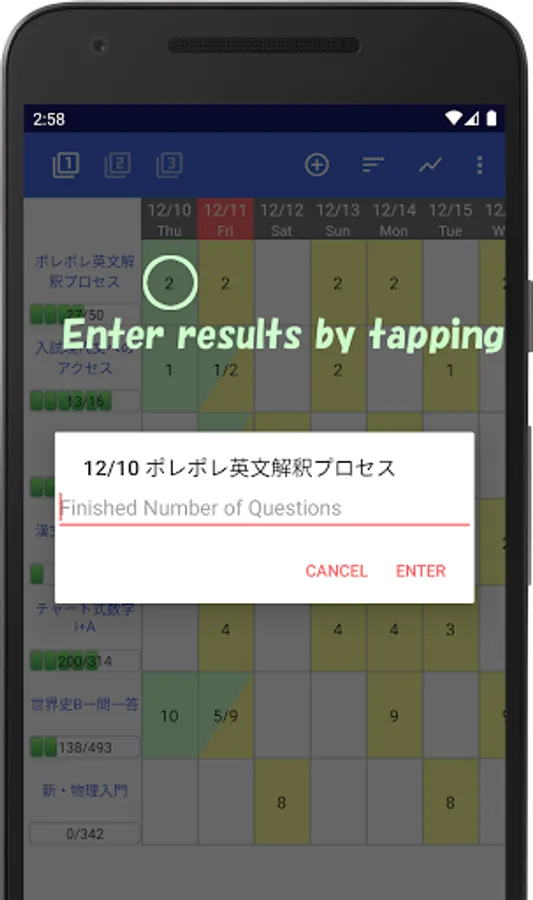 Let's tap the textbooks' today's cells and enter the finished numbers of questions.