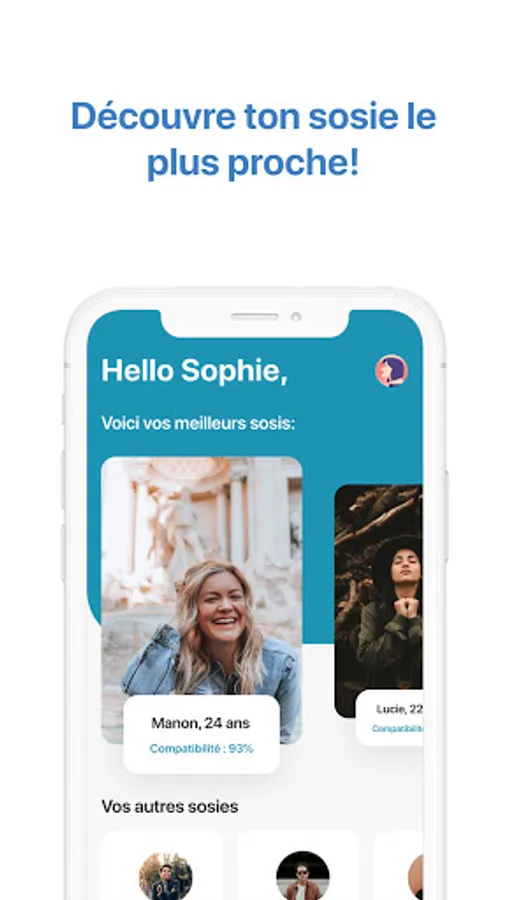 SoZie's is an application to find your own double or a really similar person thanks to the profile picture, and in addition to finding your double, you can chat with this person.