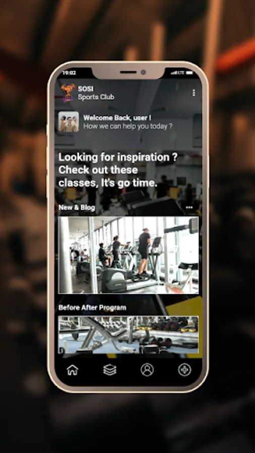 This application is a membership application for members of the social sports gym, which includes features related to fitness and health, including personal fit and health tracker history, articles related to fitness, help center for consultations.