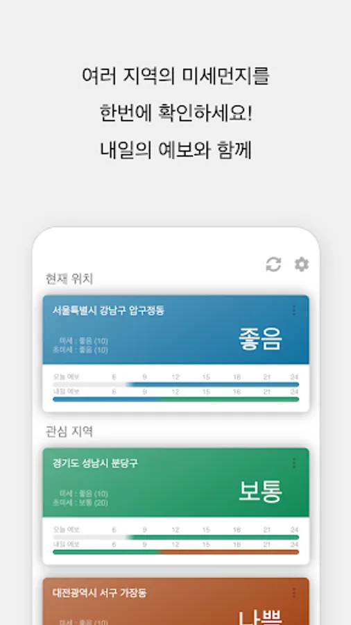 미세하게 온다 - 여러 지역의 미세먼지를 한번에 Screenshots