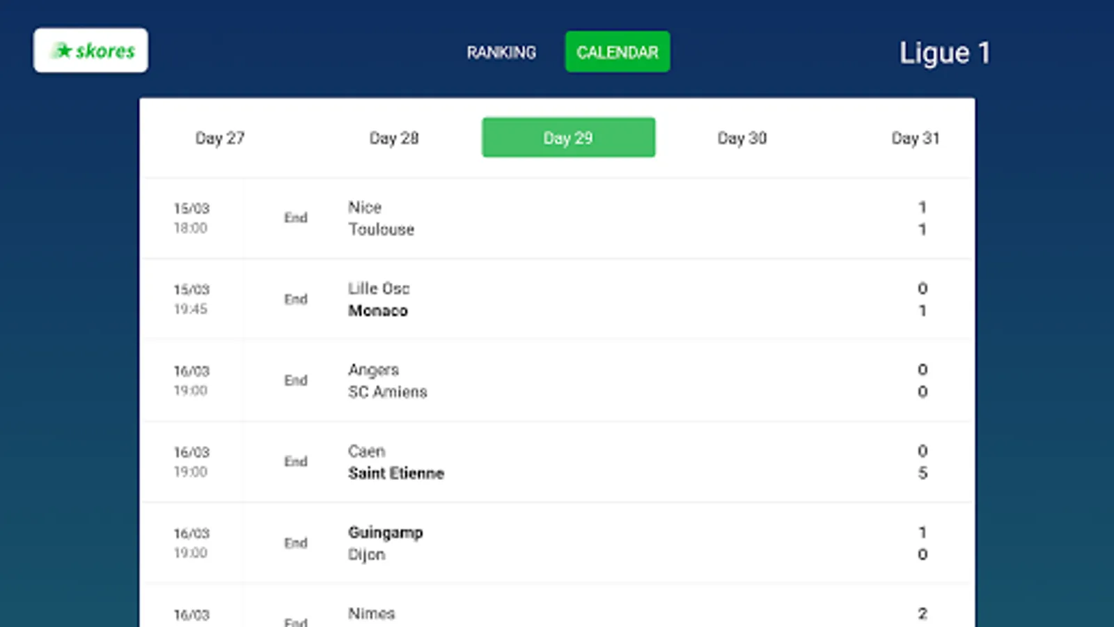"Skores - Live Football" is a free application. Download our football Livescore service right now for the complete football experience!