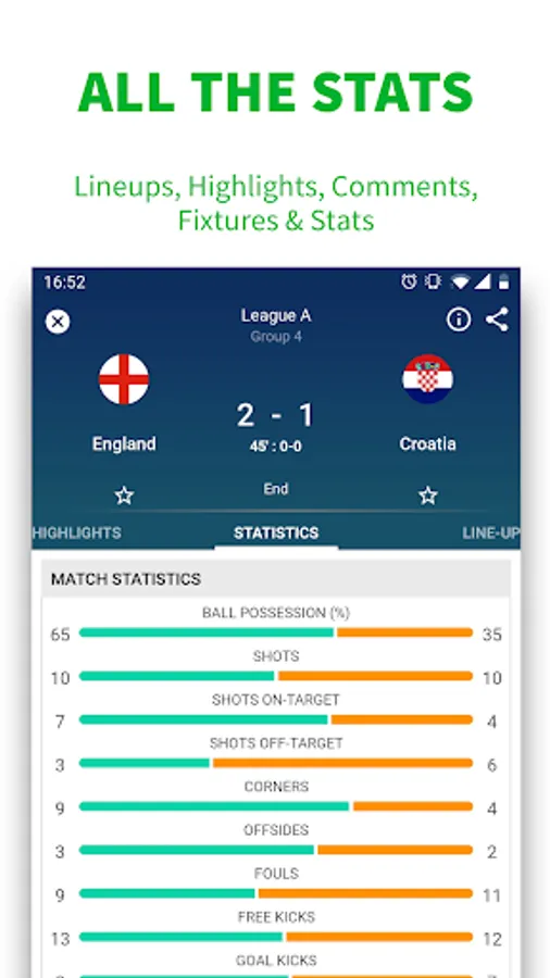 - Football matches in detail: Discover live match statistics, summaries, team sheets, names of scorers, passers and carded players (yellow and red cards, etc.)
