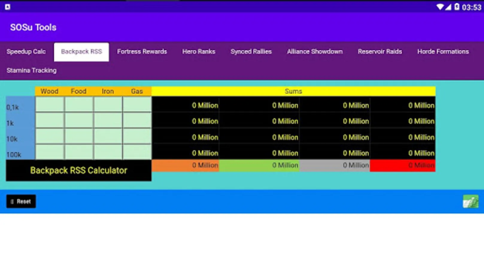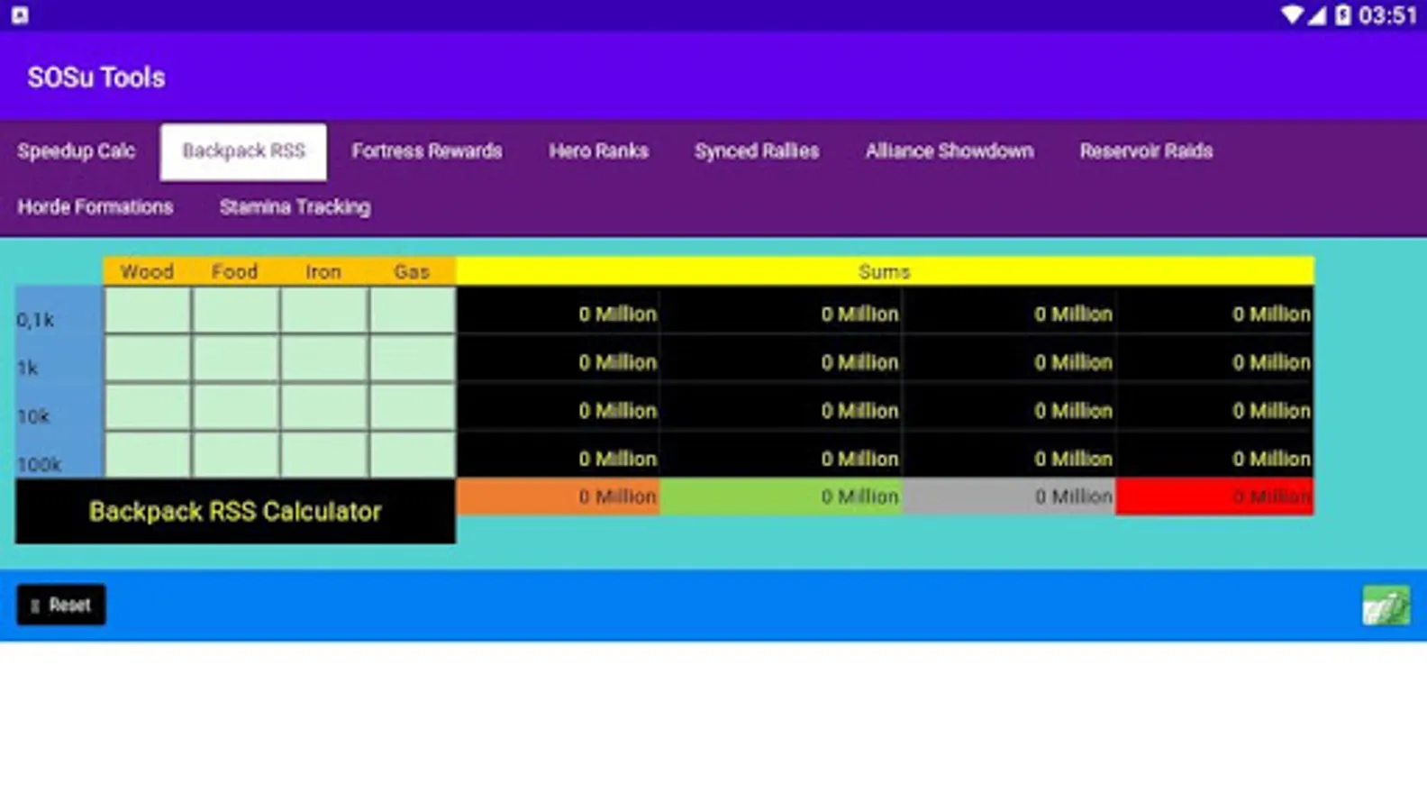 -Backpack Resources Calculator