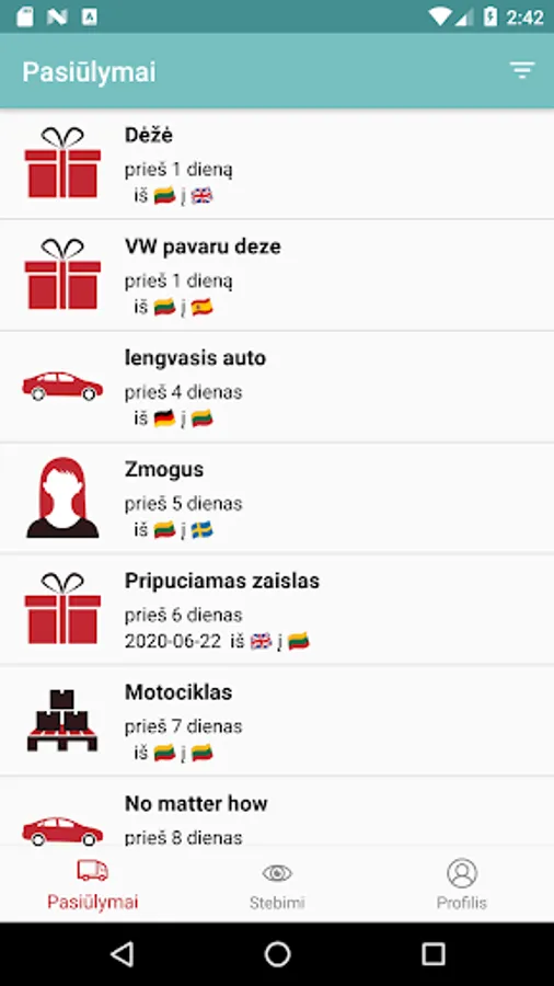 Items such as any size parcels, cars, motorcycles, removals for people relocating homes and countries.