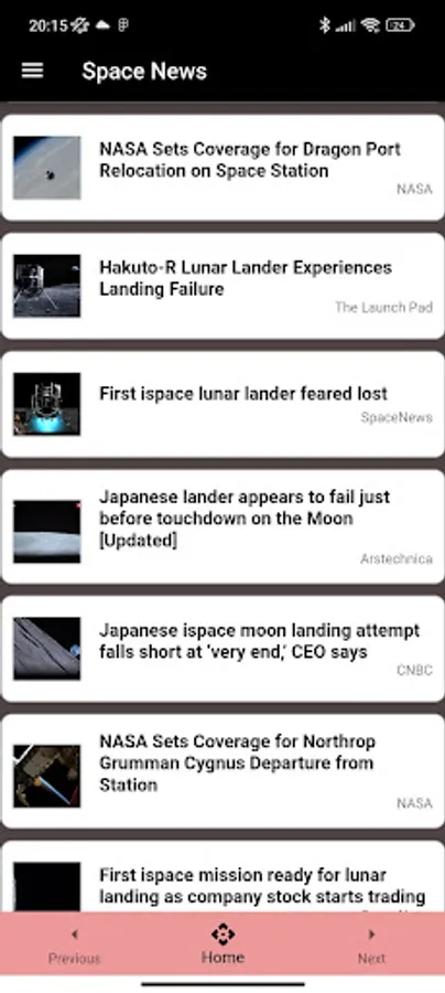 "Space News", en son uzay keşifleri, astronomi gelişmeleri ve uzayla ilgili haberleri sunan bir mobil uygulamadır. Güncel uzay olaylarına erişim sağlayarak, kullanıcılara en son bilgileri sunar. Uzay araştırmalarına ilgi duyanlar için ideal bir kaynaktır.