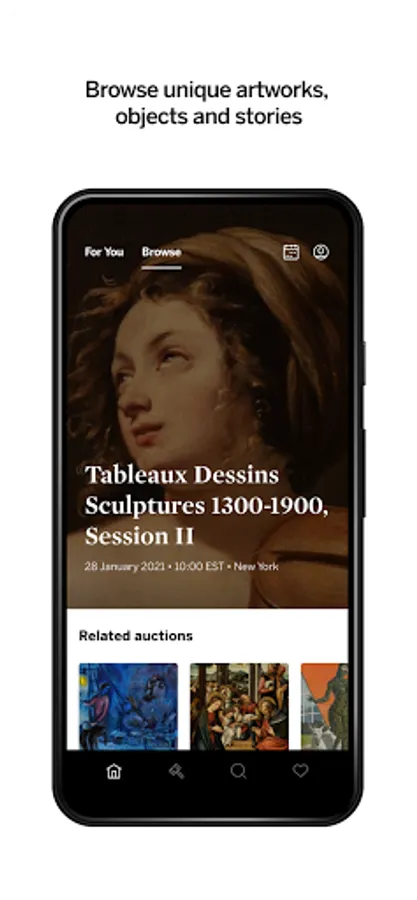 The Sotheby’s Android app provides collectors with exceptional access to the world’s most extraordinary art, precious objects, wine and jewellery, together with the unparalleled expertise of our world-class specialists.