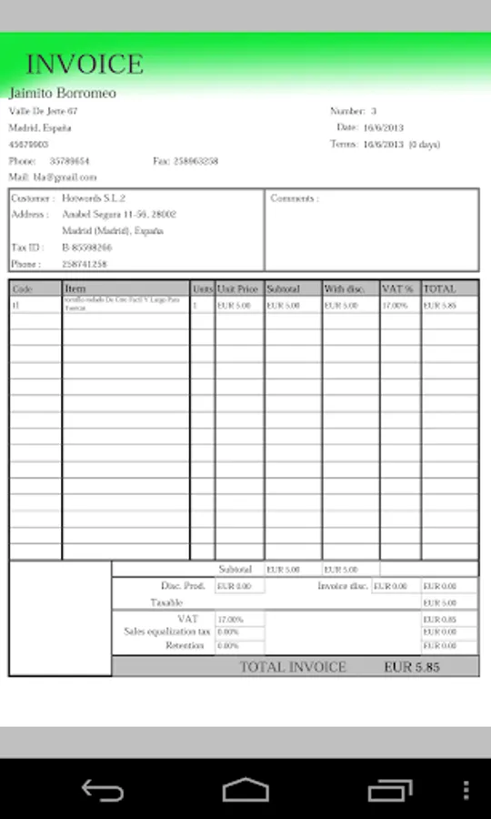 Invoice Control is an application that lets you create invoices in PDF format and send them to your customers by mail directly from your Android device.