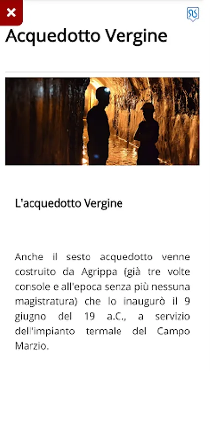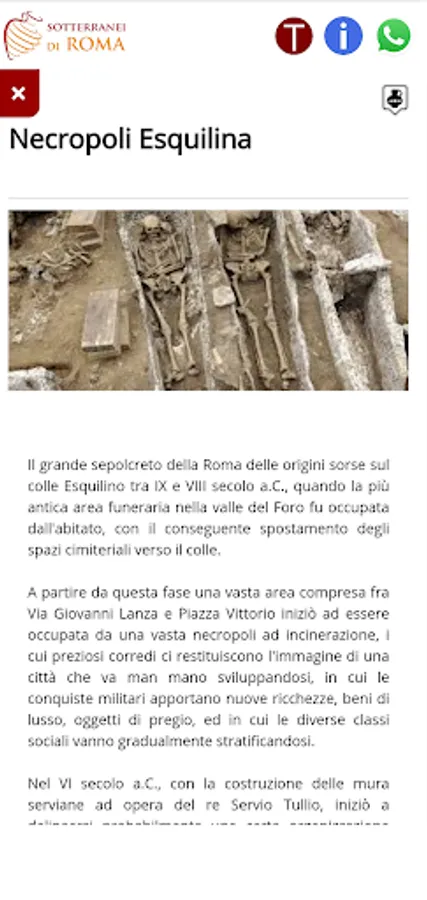 With this App you can explore, get to know and visit the territory of Rome and Lazio. Read information, search for sites, see photos and visit the archaeological resources of the area such as underground aqueducts, sewers, but also ancient quarries, mitreans and even surface works, from fountains to obelisks, Roman villas and much more.