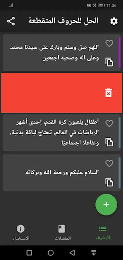 ☚ You can delete the archive by passing your finger on it from left to right or vice versa