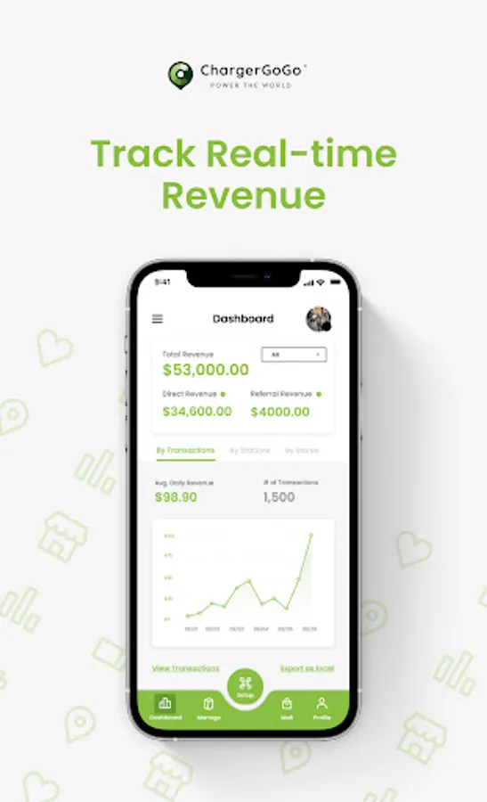 This app is for both ChargerGoGo’s Local (business and venue owners that have purchased a station) and Distribution Hosts (independent station owners) to set up and manage their charging stations. Track the transactions at each station, and know your total income at all times.