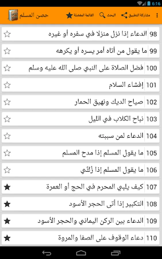 - Create your own favorite list just by making a long press on a Hadith