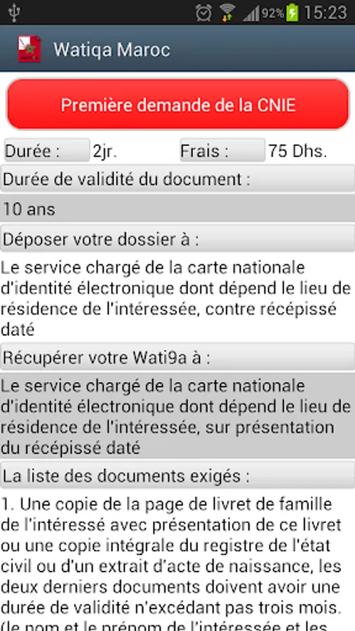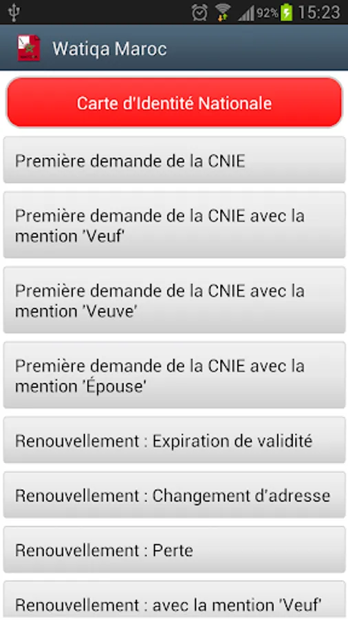 The application "Watiqa Morocco" includes all administrative procedures to change or renew an administrative document as: