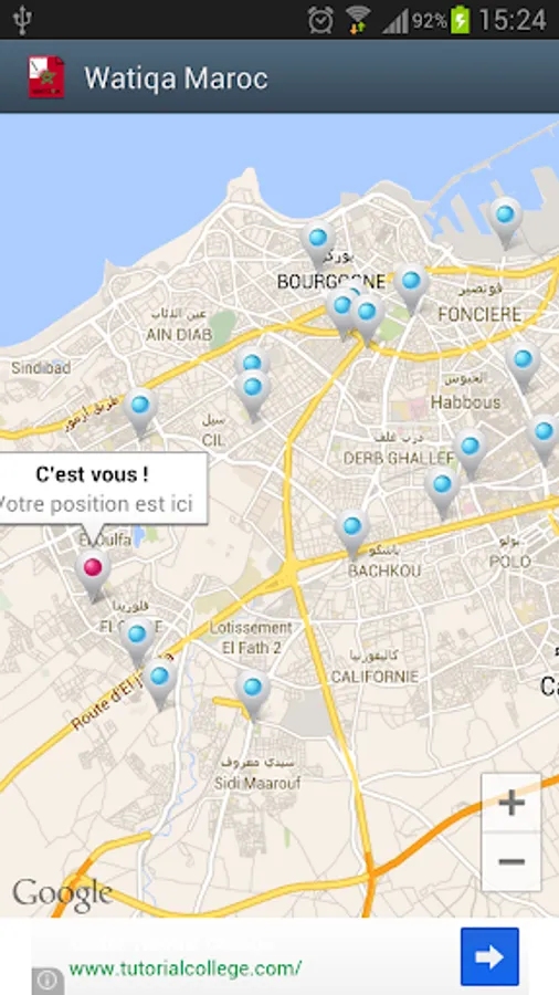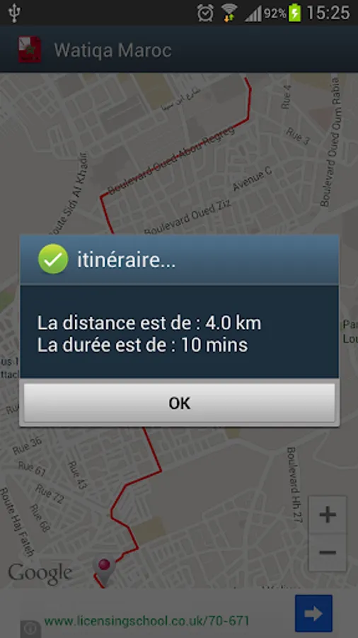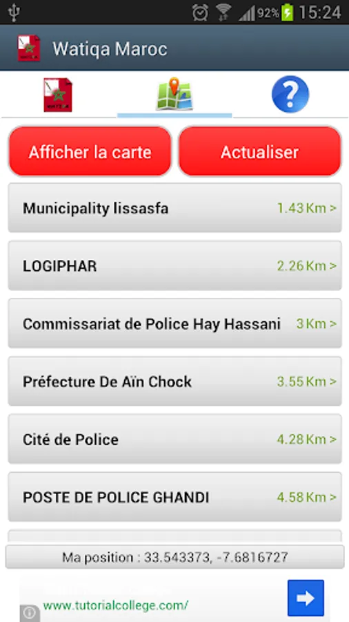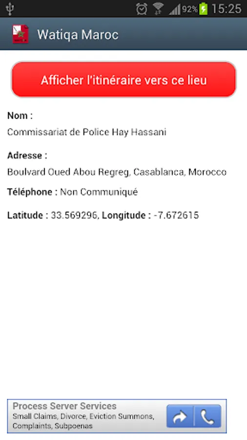 Google Map V2 map displays the police, counties, prefectures and stations nearest you police a single click and gives you the possibility to get there by offering you the route.