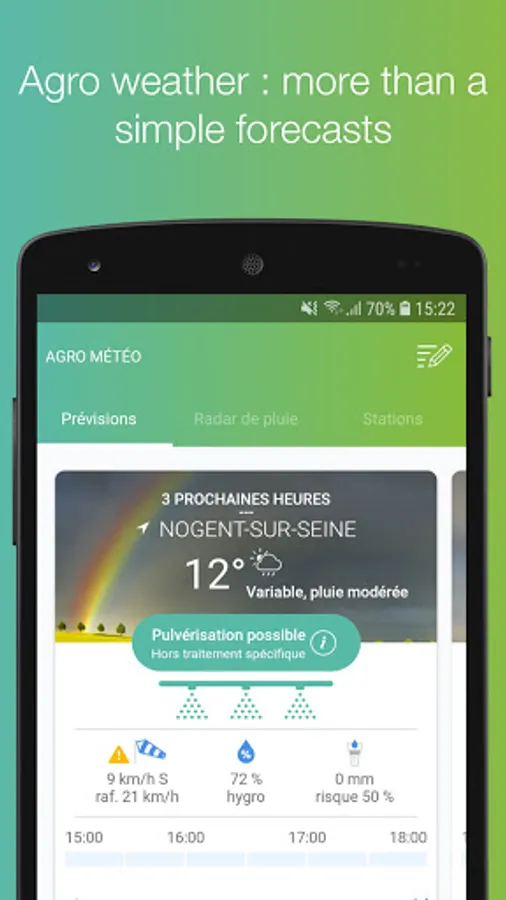 - adapt your activities in real time thanks to high precision weather forecasts for next 3 hours