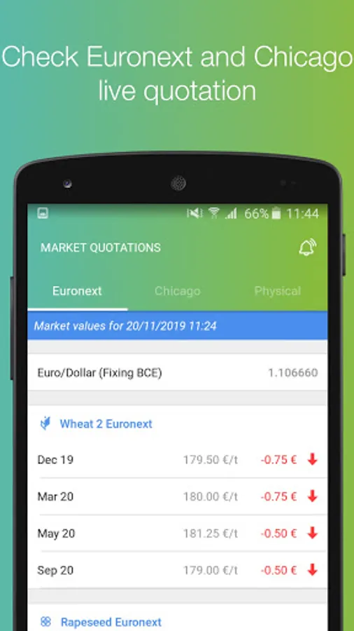 - Save your time by directly consulting the Euronext and Chicago (CBOT) listings in FARMI