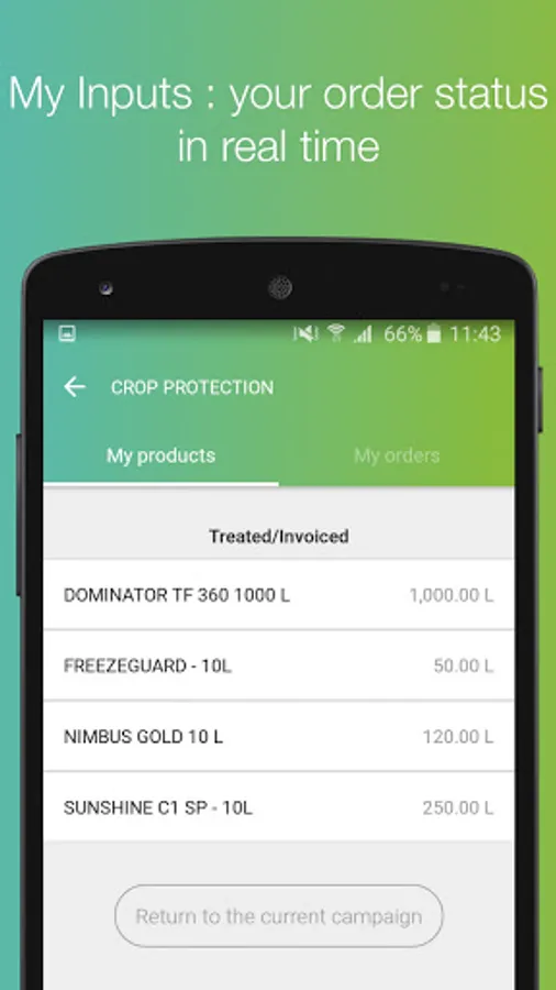 - track the progress of your orders, find quickly the latest products and quantities using simple product groups