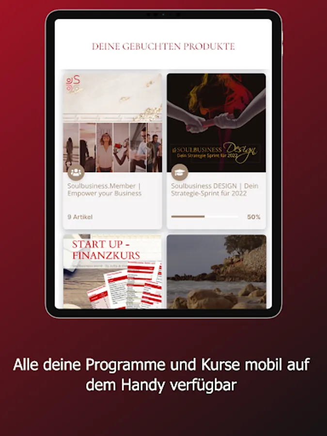 With this app you get access to the offers, courses and business tools of SOULBUSINESS that you have booked and to your personal member area.