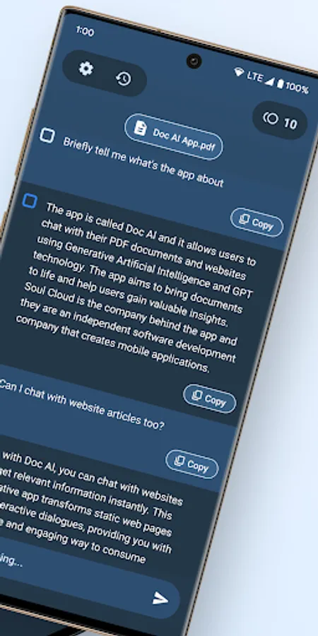 Have a lively conversation with your important documents and websites. Doc AI, our innovative app, harnesses the incredible power of Generative Artificial Intelligence (AI) and GPT technology to bring your PDFs and websites to life, enabling you to chat, analyze, and gain valuable insights like never before.