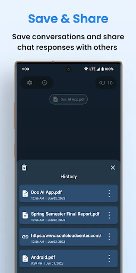With our intuitive interface, you can effortlessly organize your documents and retain your chat history. Seamlessly copy and share AI responses, making teamwork and collaboration a breeze!